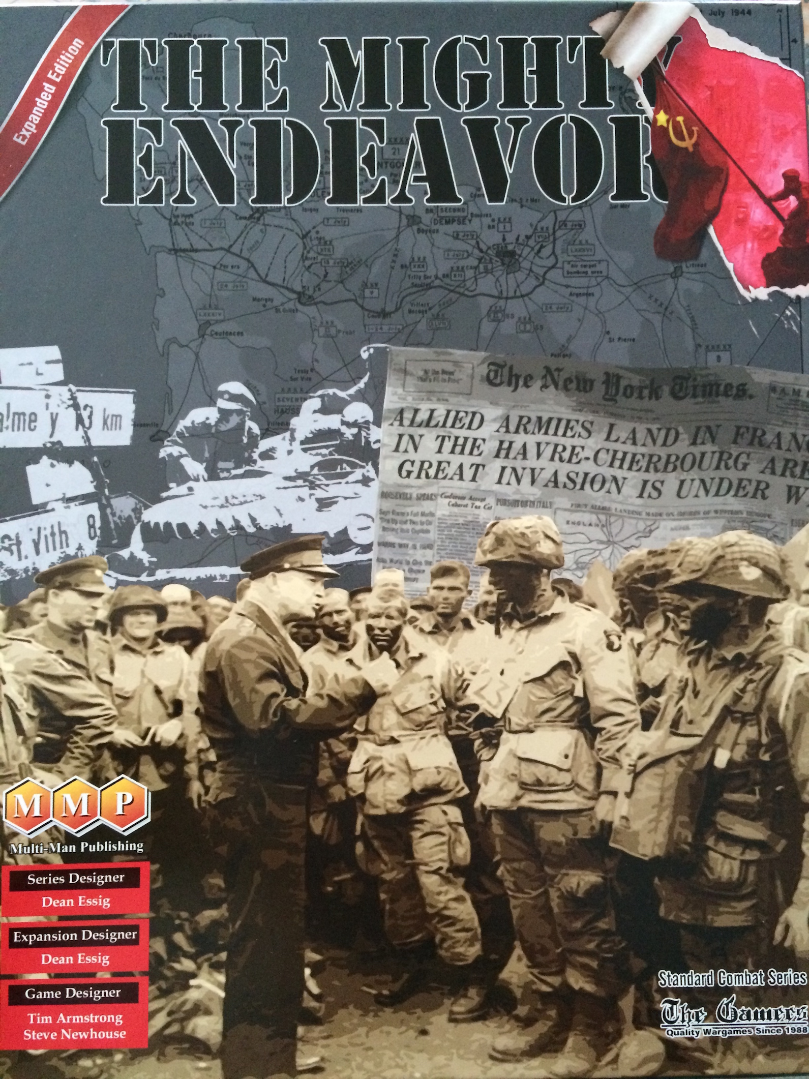 The Mighty Endeavor traite de la période du débarquement jusqu’à avril 1945. Cette nouvelle édition contient le jeu original ainsi que deux cartes supplémentaires (Bretagne et Allemagne-Pologne) qui viennent compléter la carte originale (voir la galerie de photos). Un livret de règles spécifiques dédié à l’extension vient compléter les ajouts de cette édition.