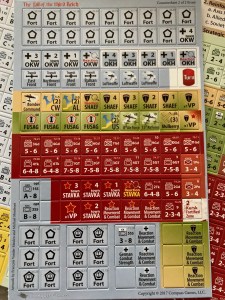 Beaucoup de règles paraissent assez habituelles : les zones de contrôle, les renforts qui permettent de faire entrer de nouvelles unités sur la carte, les remplacements qui permettent eux de retaper des unités détruites ou endommagées, le ravitaillement (avec une notion supplémentaire de Source de Ravitaillement Intermédiaire pour les allemands, qui m’a parue un peu compliquée). On peut ajouter les unités spéciales (type parachutistes) ou les alliés mineurs (autrement dit, une chair à canon pas chère…) de l’Allemagne, etc.