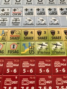 On n’est pas surpris, vue l’échelle du jeu, de trouver des mécanismes pour simuler les bombardements stratégiques sur l’Allemagne. Ces bombardements vont impacter les usines du Reich (réduisant ainsi les points de remplacement), et la production de pétrole (pour réduire le nombre de points de commandement). Les unités de bombardiers alliés peuvent bien sûr être endommagées dans les combats, mais les unités de la chasse allemande peuvent, elles, être définitivement éliminées.